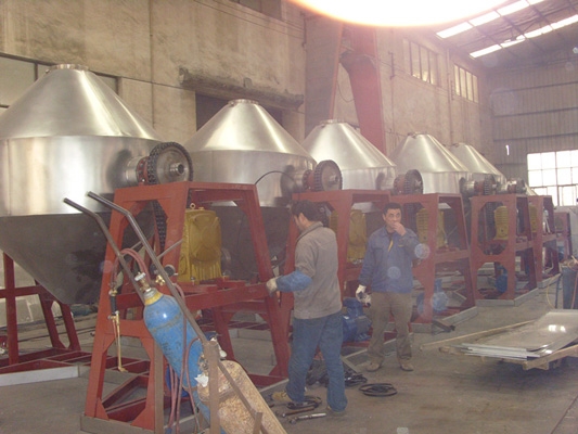◎在动力驱动下,罐体作缓慢旋转,罐内物料不断地混合,从而达到强化干燥的目的。