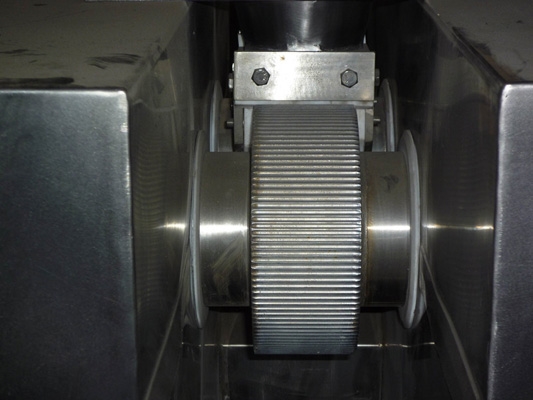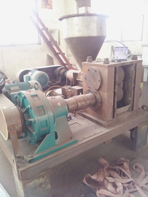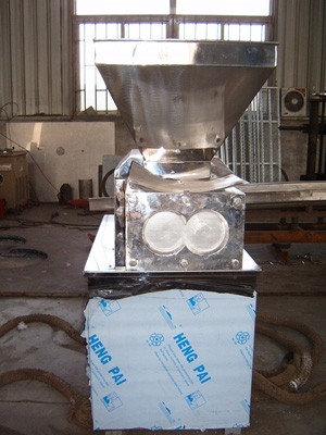挤压造粒的形式可以有对辊式和轮辗式两种,对辊式挤压是先压成大块,再破碎成颗粒,这样装置的能力大、颗粒强度高、能耗低,对辊挤压在国外使用广泛。轮辗式是在辊表面直接做成有穴槽型的形状,一次挤成成型颗粒。产品强度较低有时需添加粘结剂。适合做有机肥和复合肥等颗粒肥料。