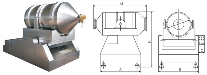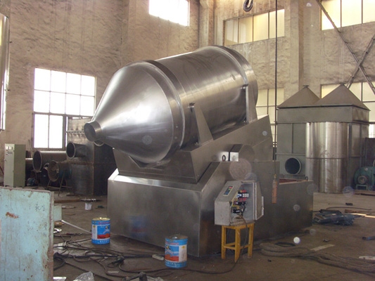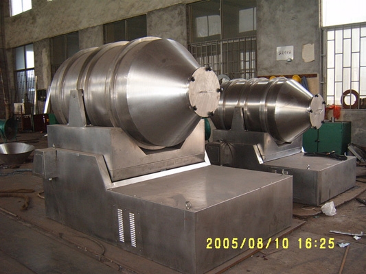EYH二维混料机的转筒可同时进行二个运动,一个为转筒的转动,另一个为转筒随摆动架的摆动。被混合物料在转筒内随转筒转动、翻转、混合的同时,又随转筒的摆动而发生左右来回的掺混运动,在这两个运动的共同作用下,物料在短时间内得到充分的混合。EYH二维混料机适合所有粉、粒状物料的混合。