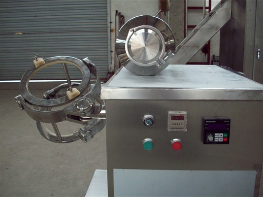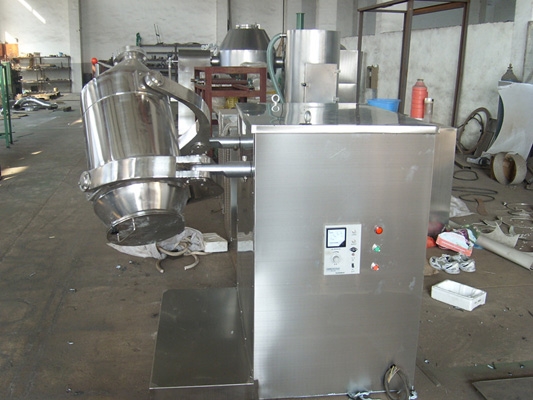 装料的筒体在主动轴的带动下,作周而复始的平移、转动和翻滚等复合运动,促使物料沿着筒体作三向复台运动,从而实现多种物料的互相流动、扩散、积聚、掺杂.以达到均匀混合的目的。