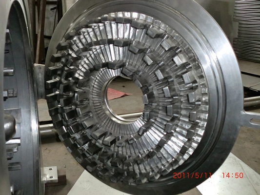 本机组利用活动齿盘和固定齿盘间的相对运动,使物料经齿冲击、摩擦及物料彼此间;冲击而获得粉碎。粉碎好的物料经旋转离心力的作用自动进入捕食袋,粉尘由吸尘箱经布袋过滤回收。该机按“GMP”标准设计,全部用不锈钢材料制造,生产过程中无粉尘飞扬。且能提高物料的利用率,降低企业成本,目前已达到国际先进水平。
