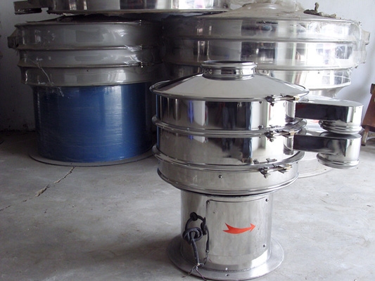 本机由料斗、振荡室、联轴器、电机组成。振荡室内有偏心轮、橡胶软件、主轴、轴承等组成。可调节的偏心重锤经马达驱动传达到主轴中心线,在不平衡的状态下产生离心力,使物料强度改变,在筛内形成轨道旋涡。重锤调节器的振幅大小可根据不同物料和筛网进行调节。整机结构紧密、体积小、不扬尘、噪音低、质量高、能耗低、移动维修方便。